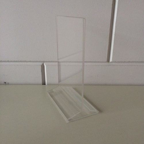 De 2-delige menustandaard gemaakt van doorzichtig acryl is de perfecte manier om uw folders of menu te presenteren. Het voordeel van een menu-standaard ten opzichte van een L-standaard is de tweezijdige presentatiemogelijkheid. Door het transparante schuifvoetje is deze display uitermate geschikt voor balie-, etalage- en tafelpresentatie. Bovendien zorgt dit voetje ervoor dat de inhoud van de kaarthouder makkelijk verwisseld kan worden en dat de inhoud niet weg kan zakken.