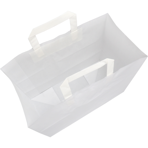 Papieren draagtas wit effen platpapieren handgreepDraagtas 27/17 x 26cm wit 400stuks, Dankzij zijn bodemvouw, zijvouw en stevige blokbodem blijft hij mooi rechtop staan.Deze multifunctionele draagtas,geschikt voor zowel food ..